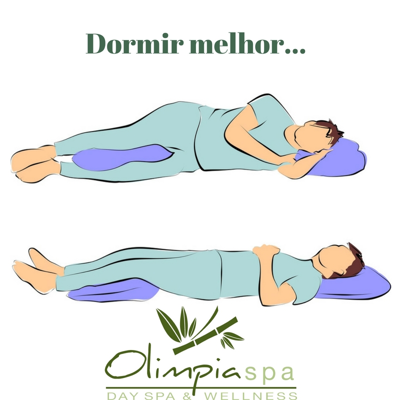 O mesmo vale para nossas pernas. O ideal é não deixá-las retas (esticadas). Deixe elas semi-flexionadas (com os joelhos dobrados e com a perna de cima repousando um pouco à frente) e apoiada com um travesseiro entre as pernas.