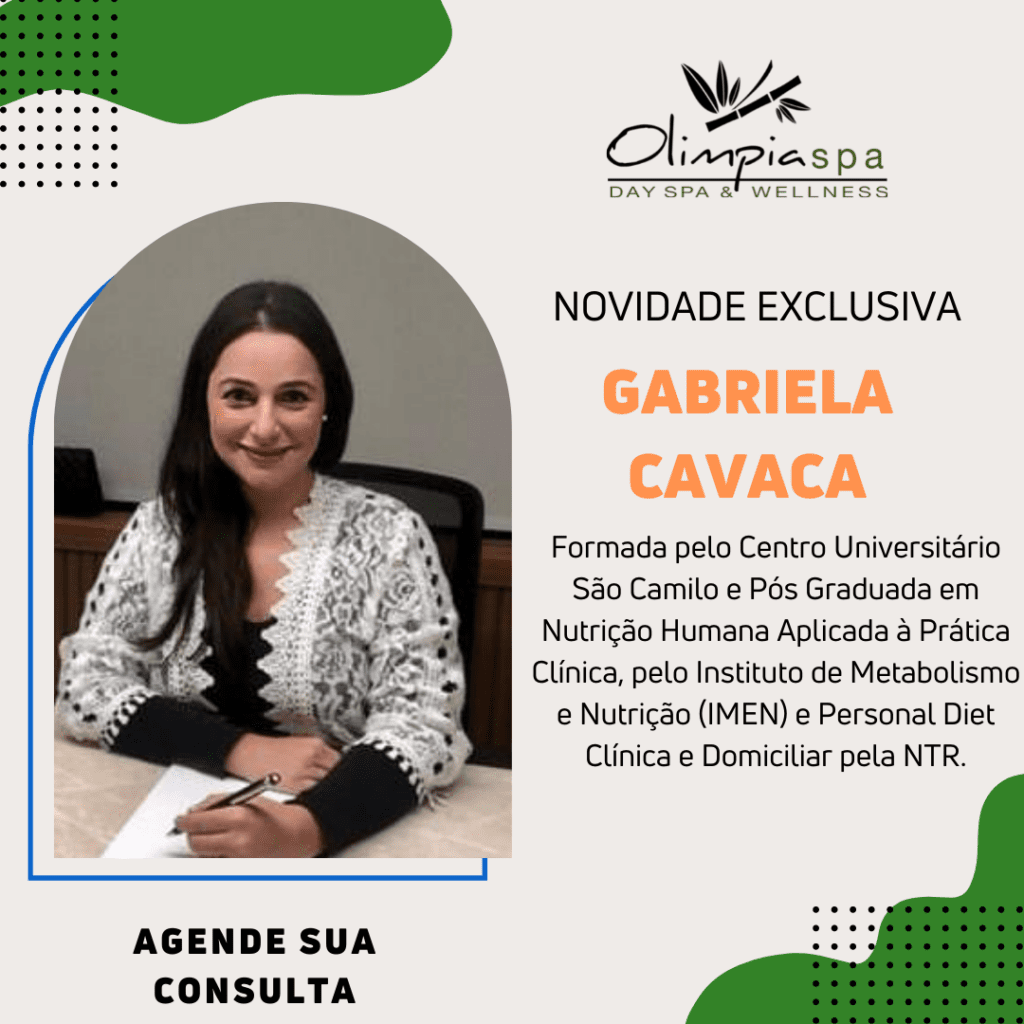 Agora temos atendimento com nutricionista para alavancar ainda mais seu cuidado com a saúde! Gabriela Cavaca, formada pelo Centro Universitário São Camilo e Pós Graduada em Nutrição Humana Aplicada à Prática Clínica, pelo Instituto de Metabolismo e Nutrição (IMEN) e Personal Diet Clínica e Domiciliar pela NTR. Apresenta longa experiência em Atendimento Nutricional passando pelo Hospital Pérola Byington e Clínicas Médicas.