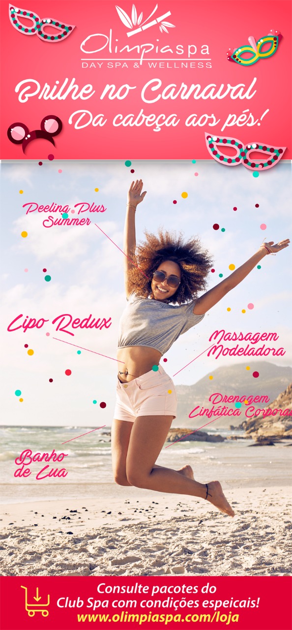 E, após o Carnaval, prepare-se para enfrentar os compromissos de 2020 com mais energia, autoestima e confiança. Inclua, em sua rotina, um dia no Olimpia Spa!